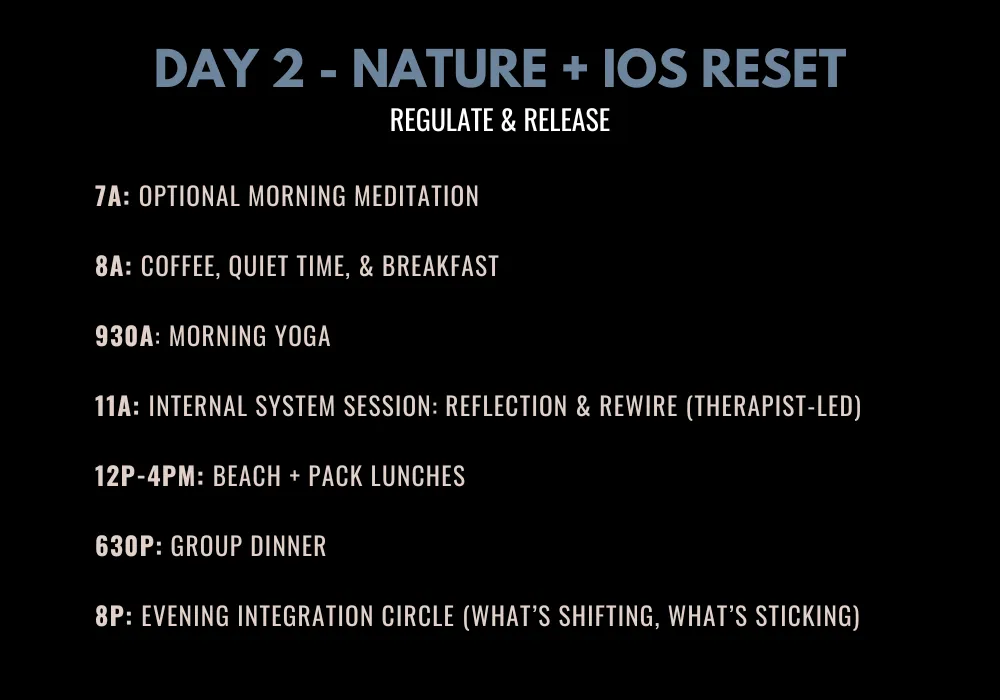 Therapist-Led Internal System Reset: Morning regulation, meditation, yoga & rewire mindset sessions to quiet the chaos + rebuild calm.